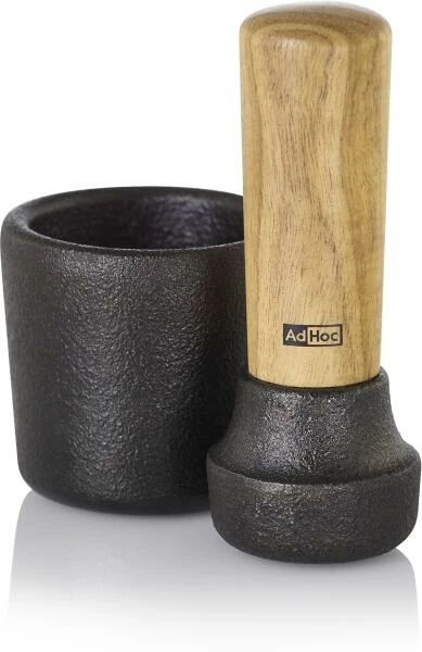 AdHoc Mörser Camo.6. 2-teiliges Set bestehend aus Mörser und Stößel aus edlem Akazienholz und Gusseisen.