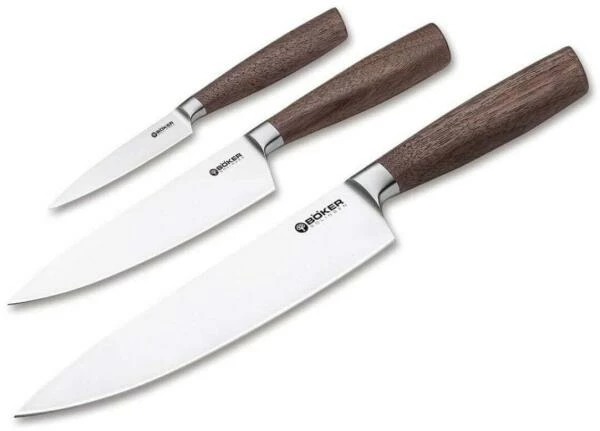 Böker Messerset Core mit Geschirrtuch, 4-teilig. Das Messer-Set bestehend aus Spickmesser, kleinem und großen Kochmesser sowie Geschirrtuch wird in einer ansprechenden Verpackung geliefert und eignet sich bestens als Einstiegsset für ambitionierte Hobbyköche.