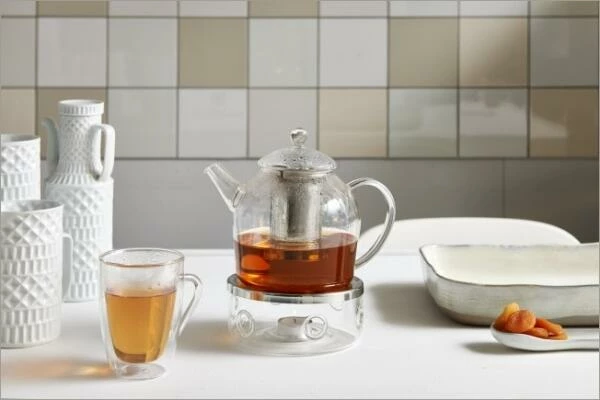 Teekanne Minuet Santhee mit Edelstahlfilter. Die Kanne besteht aus hitzebeständigem Borosilicatglas. Mit dieser zeitlos-eleganten Glaskanne haben Sie die Füllmenge stets im Blick.