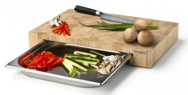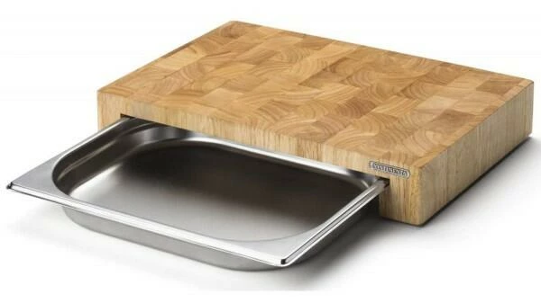 Eigenschaften des Continenta Schneidebretts aus Gummibaum Stirnholz mit Schublade: