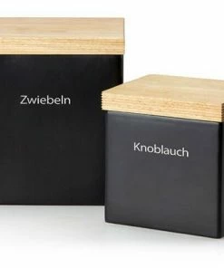 Continenta Vorratsdose mit Holzdeckel, matt schwarz. Optimale Belüftung durch spezielle Luftlöcher. Perfekt für Zwiebeln, Knoblauch, Gewürze, Kräuter oder Tee.