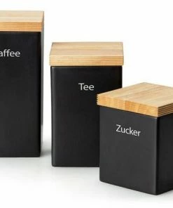 - Austauschbare Beschriftungen (Kaffee, Tee, Zucker) zum Aufkleben