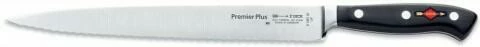 Dick Tranchiermesser mit Wellenschliff aus der Serie Premier Plus. Der gezackte Wellenschliff schneidet Braten und Krusten einfach und schnell. Auch für Obst und Gemüse mit fester Schale geeignet.