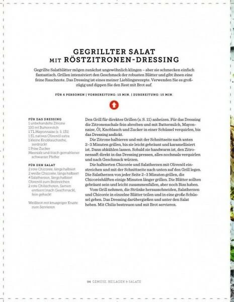 Und wer dann immer noch nicht genug hat, für den legt RICH HARRIS ganze Salatköpfe auf den Rost, räuchert Tomaten und serviert sie mit Lardo-Speck oder röstet zuckersüße Feigen und saftige Kirschen für unwiderstehliche Dessertkreationen.