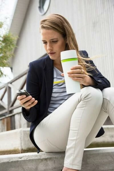Emsa Isolier-Trinkbecher Travel Mug Fun in weiß/grün. Der Isolierbecher Travel Mug von Emsa ist Testsieger unter den Thermobechern und vereint Funktionalität und modernes Design.