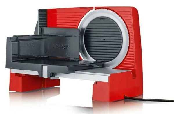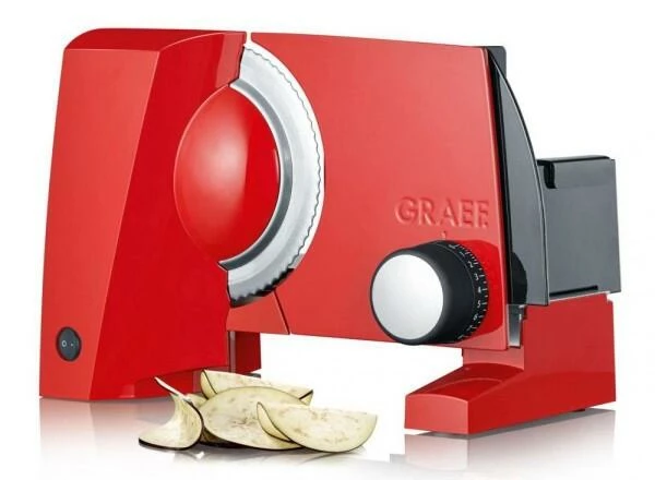 GRAEF Allesschneider Sliced Kitchen SKS 10003 in rot. Schnell und präzise verwandelt der neue Allesschneider von GRAEF alle Ihre Zutaten in hauchdünne Scheiben, wodurch sich die Aromen noch intensiver entfalten können. Zusätzlich glänzt der Allesschneider durch Sicherheit, Qualität, Komfort sowie raffinierten, innovativen Details. Das ideale Einsteiger-Modell im edlen Design.