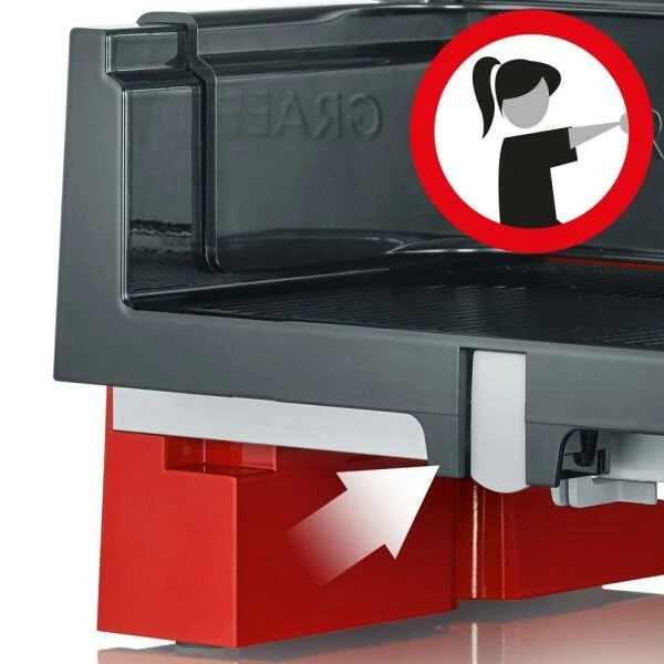 - Stabiler und leichtgängiger Schlitten mit Kindersicherung