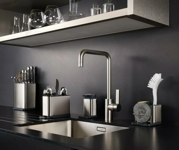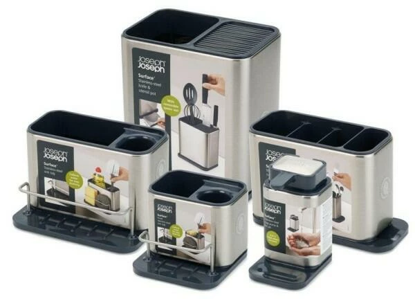 Joseph Joseph Messer- und Küchenutensilienbehälter Surface in Edelstahl. Ermöglicht Ordnung und Platz im Spülenbereich.