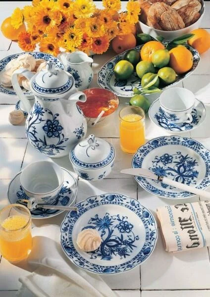 Das Frühstück, serviert auf dem Porzellan mit dem verspielten Zwiebelmuster von Kahla, schmeckt gleich noch mal so gut. Kleine Besonderheiten wie der stilisierten Rosenknospe, der bogenförmige Rand und der floral geschwungene Henkel, sind eine tägliche Freude für das Auge. Die intensive blaue Farbe – ihr Geheimnis liegt in der Verwendung von Kobaltoxid – weckt die Lebensgeister. Da kann das Frühstück mit dem Zwiebelmuster von Kahla schon mal bis zum Mittag dauern.