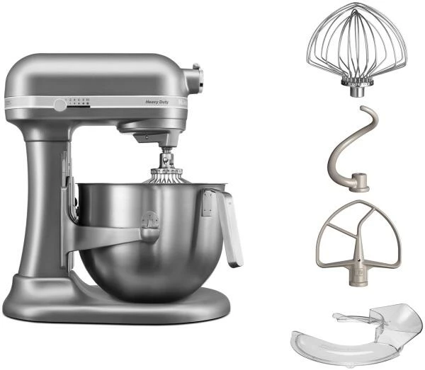 Küchenmaschine HEAVY DUTY in silber mit Schüsselheber und 6,9 L Edelstahlschüssel.