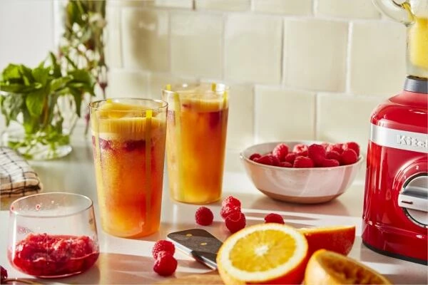 Diese drei Komponenten des Mix-Systems wirken so zusammen, dass selbst bei harten Zutaten eine perfekte Konsistenz und bester Geschmack erzielt wird. Das asymmetrische Edelstahlmesser des Blenders ist besonders geschärft und präzise angewinkelt, es nutzt vier Mixwinkel, um selbst härteste Zutaten in den Strudel zu ziehen. Der BPA-freie Behälter mit Skala fasst insgesamt 1,4 Liter und ist sehr stabil.
