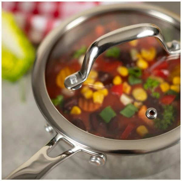 Der Glasdeckel mit Dampföffnung für bequemes Sichtkochen verhindert unnötigen Wärmeverlust oder ein Vakuum.