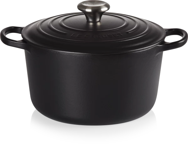 Die neue Serie Signature von Le Creuset kombiniert neue mit bewährten Produkteigenschaften. Die Signature Produkte verfügen über eine speziell entwickelte strapazierfähige Innen-Emaille, die nicht an Glanz und Farbe verliert und zudem eine hohe Widerstandskraft gegen Abnutzung aufweist. Außerdem sorgt die helle und lebendige Farbe der Innen-Emaille für ein schönes Aussehen. Alle Signature Produkte verfügen über große Griffe, wodurch ein leichter, sicherer Transport vom Herd in den Backofen und von der Küche zum Esstisch gewährleistet wird. Der ergonomische Knopf aus gebürstetem Edelstahl besticht nicht nur durch sein formschönes Design, sondern auch durch seine Hitzebeständigkeit bis zu 260 °C. Das moderne, frische Aussehen von Signature wird von einem Deckel mit deutlicher Markenerkennung komplettiert, in dessen Rand Stabilisierer integriert sind, die verhindern, dass der Deckel wackelt. Somit ist für mehr Sicherheit gesorgt.
