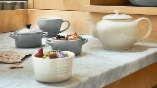 Le Creuset Steinzeug ist, wie Porzellan, feinkeramisch und gehört zu der qualitativ hochwertigen Kategorie dichter Tonwaren. Im Gegensatz zum namensähnlichen Steingut hat Steinzeug eine deutlich bessere Beständigkeit, Festigkeit und Dichtigkeit des Materials. Die hohen Brenntemperaturen von bis zu 1300 Grad Celcius und die geringe Porösität gewährleisten eine dauerhafte Beanspruchung ohne Glasurrisse.