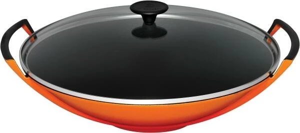 - Ausstattung: Wok mit Glasdeckel aus Gusseisen