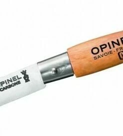 Opinel Mini-Messer mit einer Klinge aus nicht rostfreiem Kohlenstoffstahl. Heft aus lackiertem Hartholz.