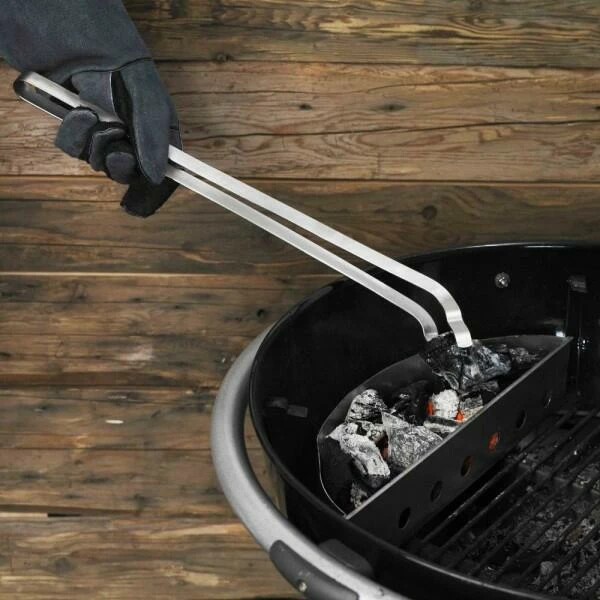 Rösle läßt sich heiße Grillkohle einfaches und sicher Positionieren. Als Zange, z. B. für Briketts, oder Schieber verwendbar.