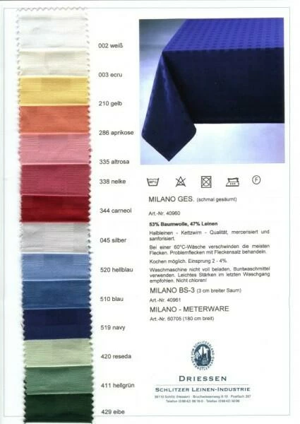 Eigenschaften der Schlitzer Leinen Tischdecke Milano: