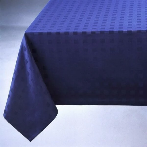 Tischdecke Milano blau. Jacquardgemusterte Damasttischwäsche aus 53% Baumwolle, 47% Leinen, Halbleinen-Kettzwirn-Qualität, mercerisiert und sanforisiert. Masters of Leinen-Qualität.