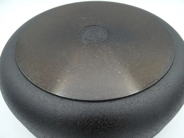 Bei der Herstellung der Pfannen in der Gießerei Skeppshult werden keinerlei Farben oder andere Chemikalien verwendet. Die Pfannen werden ab Werk mit Rapsöl eingebraten. Das verleiht den Pfannen eine schöne schwarze Farbe und bietet einen ersten Antihaftschutz. Ansonsten verfügen die Pfannen über keine weitere Beschichtung. Sie braten also auf purem Gusseisen. Vor dem ersten Gebrauch der Pfannen bedarf es keinerlei Vorbereitungen. Es empfiehlt sich lediglich ein kurzes Ausspülen mit heißem Wasser, um Staub und Produktionsrückstände zu entfernen.