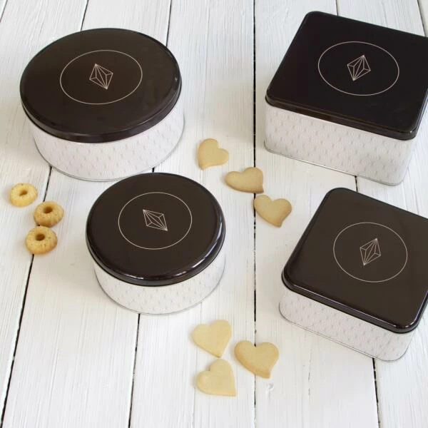 Die Gebäckdose aus der Reihe „Vanilla Diamonds“ ist aus Weißblech gefertigt. Sie eignet sich zum Aufbewahren kleiner Kuchen oder Plätzchen, und zum Verschenken kleiner Aufmerksamkeiten.