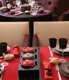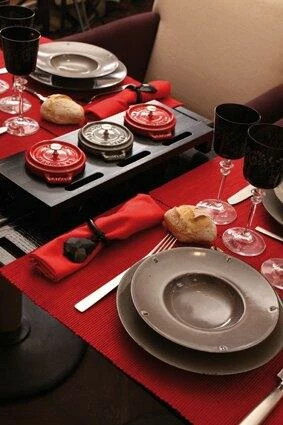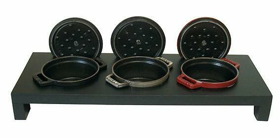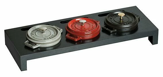 Staub Servierbrett für 3 Mini Cocottes in schwarz (ohne Cocotten). Ideal zum Servieren von 3 Staub Mini Cocottes am Tisch.