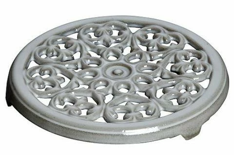 Topfuntersetzer Lilie in grau. Im optisch ansprechenden Design sorgt der Topfuntersetzer Lilie dafür, dass Sie Ihre Speisen im heissen Gusseisengeschirr auch auf dem Tisch servieren können.