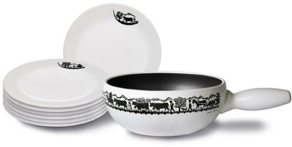 - Lieferumfang: Caquelon aus feuerfester Keramik, 6 Fondueteller Alpaufzug