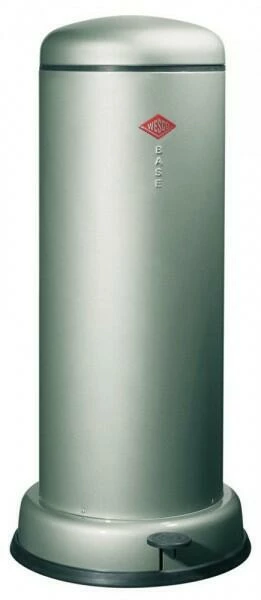 Wesco Big Baseboy 30 Liter mit Dämpfer in neusilber. Tretabfalleimer im Stil der 50er Jahre. Mit standfestem Sockel und robuster Tretmechanik.