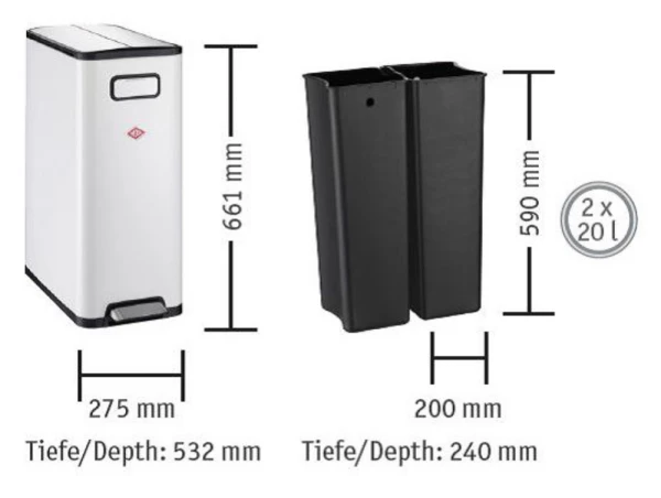 - Fassungsvermögen: 2 x 20 Liter