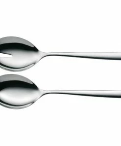WMF Salatbesteck Boston. Durchmischen, aufgreifen, servieren: Keine Frage, zu einem frischen Salat gehört ein Salatbesteck. Es ist stets zweiteilig, wobei seine flachen, äußerst großzügig gestalteten Laffen die leichte Aufnahme des Salats ermöglichen und zwar so, dass überschüssiges Dressing vor dem Servieren leicht abtropfen kann. Die langen Stiele des Bestecks sorgen für bequemes Hantieren und verhindern zugleich, dass es in die Salatschlüssel rutscht.
