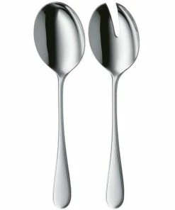 WMF Salatbesteck Kent. Durchmischen, aufgreifen, servieren: Keine Frage, zu einem frischen Salat gehört ein Salatbesteck. Es ist stets zweiteilig, wobei seine flachen, äußerst großzügig gestalteten Laffen die leichte Aufnahme des Salats ermöglichen und zwar so, dass überschüssiges Dressing vor dem Servieren leicht abtropfen kann. Die langen Stiele des Bestecks sorgen für bequemes Hantieren und verhindern zugleich, dass es in die Salatschlüssel rutscht.