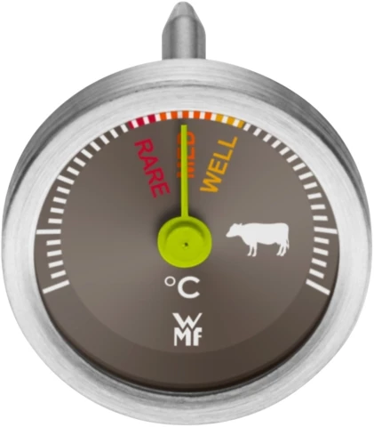 WMF Steakthermometer. Perfekt und auf den Punkt gegart: Mit dem Bratenthermometer von WMF messen Sie die Kerntemperatur von saftigen Braten während der gesamten Garzeit im Ofen. Dazu stecken Sie den 13 Zentimeter langen Dorn aus rostfreiem Cromargan® einfach in die Mitte des Fleisches.