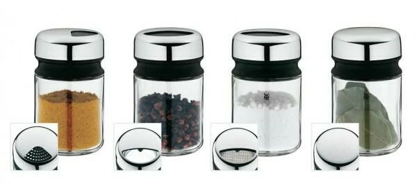 Die Kollektion Depot bietet formschöne, moderne Streuer und Gewürzmühlen mit original Keramikmahlwerk zum Aufbewahren und Mahlen von vielen verschiedenen Gewürzen. Die Gewürzstreuer gibt es mit 3 verschiedenen Streueinsätzen: grob, fein und universal. Der Glasbehälter, der mit einem WMF Logo versehen ist, macht den Inhalt sichtbar, ist appetitlich und hygienisch. Alle Produkte der Kollektion Depot werden unbefüllt ausgeliefert.