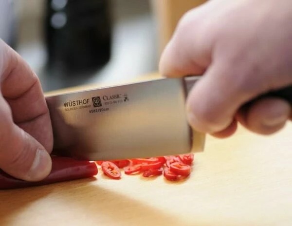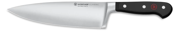 Wüsthof mit extra breiter Klinge aus der Serie Classic. Zum Wiegen und Hacken, sowie zum Schneiden von Fleisch, Fisch, Obst und Gemüse. Der Alleskönner in der Küche.
