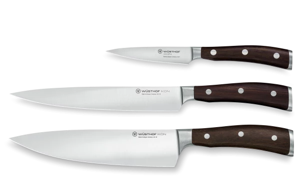 Wüsthof Ikon Kochmesser, Wüsthof Ikon Schinkenmesser und Wüsthof Ikon Spickmesser.